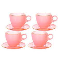 XICARA PARA CHÁ COM PIRES DE VIDRO MATTE ROSA COM BORDA DOURADA 170ML 8 PEÇAS