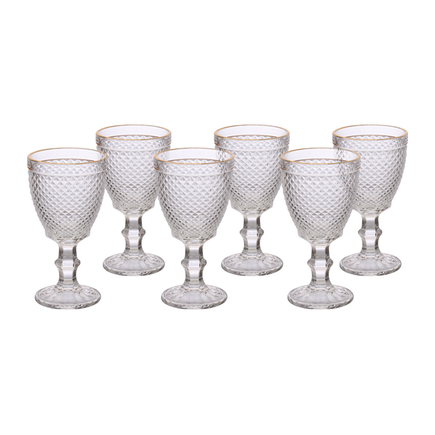 Taça De Vidro Para Água E Vinho Com Borda Dourada Bico De Jaca 320 ml 6 Peças -